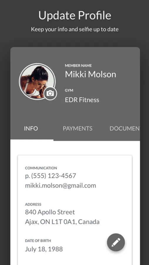 For members of EDR Fitness to reserve their place in a class, sign up for gym events, and general account management like updating headshots and credit card on file.