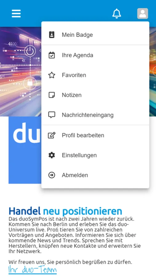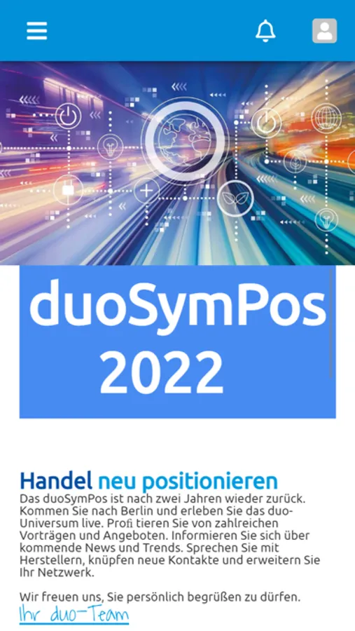Die duoSymPos Messe-App ist Bestandteil des neuen Konzepts und ein absolutes Must-Have für jeden Teilnehmer des duoSymPos! Sie enthält alle relevanten Informationen. Von der Agenda, über das Ausstellerverzeichnis inklusive aller Messeangebote, bis hin zum Messeplan, finden Sie alles in dieser App. Sie ist Informations- und Kommunikationsplattform in einem. Die App hält viele Highlights bereit, beispielsweise eine Chat-Funktion. So kann, wie man das von namhaften Social-Media-Apps und -Messenger kennt, jeden App-Nutzer über die App kontaktiert werden. Besonders interessant ist das Ausstellerverzeichnis. Hier werden Informationen wie Messerabatte hinterlegt. Darüber hinaus besteht eine interaktive Verlinkung zum Messeplan, sodass man sich jeder Zeit den Standort eines Standes anzeigen lassen kann. Die Nutzung der App ist einfach und intuitiv, dadurch bietet sie alle Vorteile der Digitalisierung