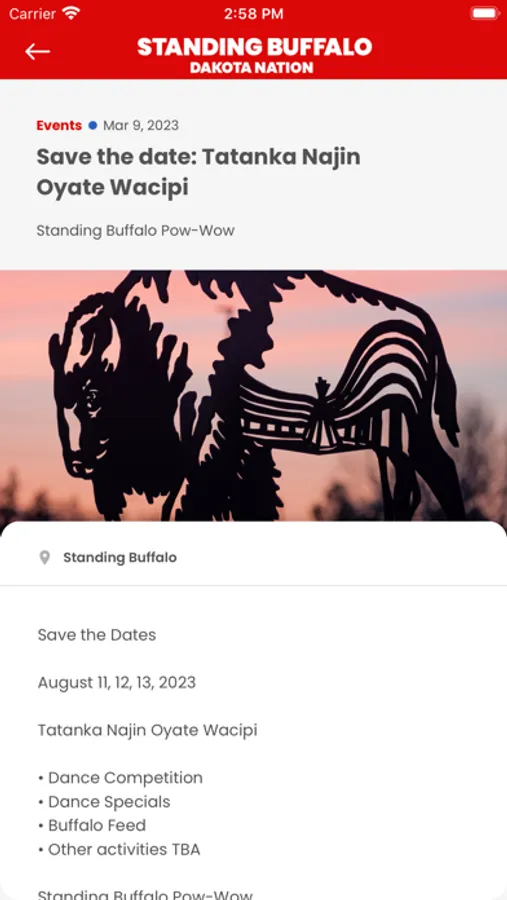 Welcome to the Official App of the Standing Buffalo Dakota Nation! We have developed the Standing Buffalo Dakota Nation app to be a communications platform for our community. Our app helps Standing Buffalo Dakota Nation staff, community members, band members, and the general public to keep up with goings-on around the Nation.