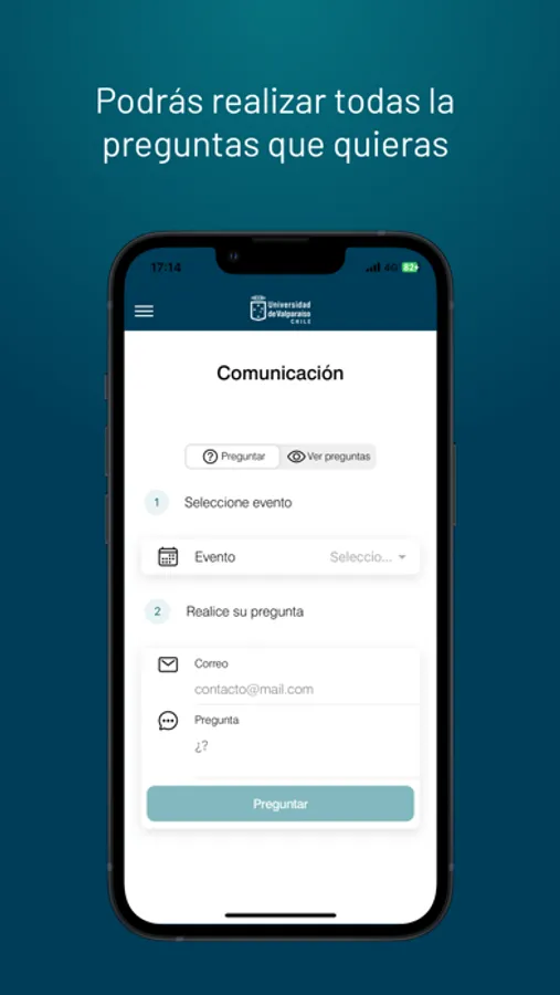 Por último, la aplicación también permite a los usuarios realizar preguntas relacionadas con los eventos y actividades en los que estén interesados. De esta manera, los usuarios pueden obtener la información que necesitan de manera rápida y eficiente, lo que puede contribuir a una mayor participación y satisfacción en la vida universitaria.
