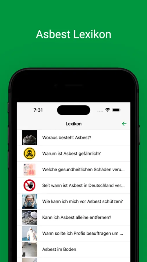 Die App ist einfach zu bedienen und bietet eine schnelle und zuverlässige Möglichkeit, potenzielle Asbestquellen in Ihrem Zuhause zu identifizieren.