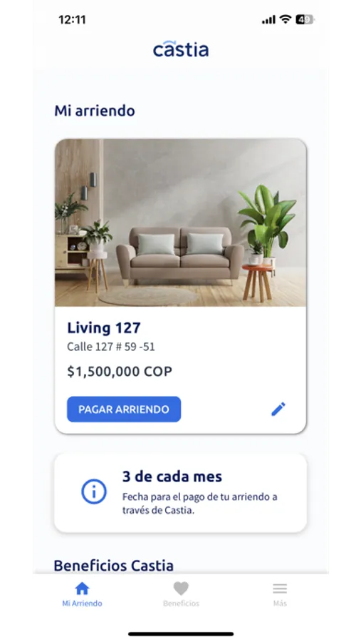 Castia es la plataforma que te permite hacer el pago de tu arriendo con diferentes métodos de pago pero a su vez te permite por primera vez ganar beneficios sobre el pago más grande que tienes en el mes. Los beneficios que puedes obtener son:
