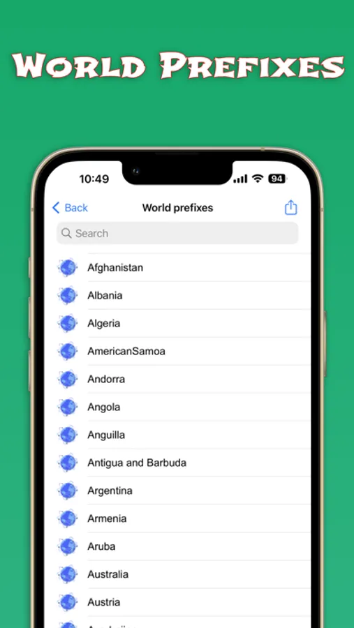 In the app there is a list of the prefixes of all the countries so you don't worry about that either