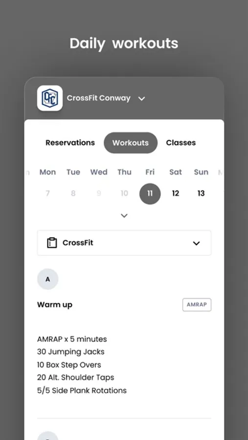 For members of CrossFit Conway to reserve their place in a class, sign up for gym events, and general account management like updating headshots and credit card on file.