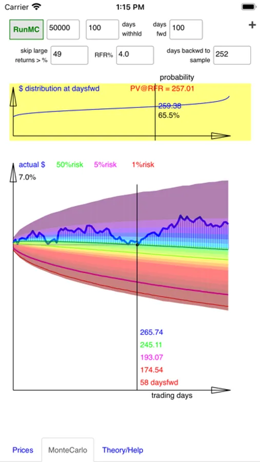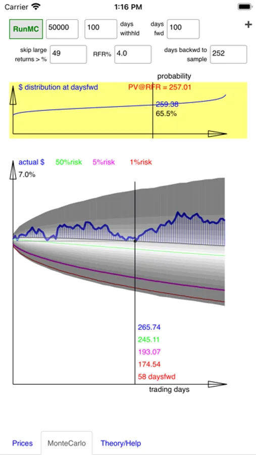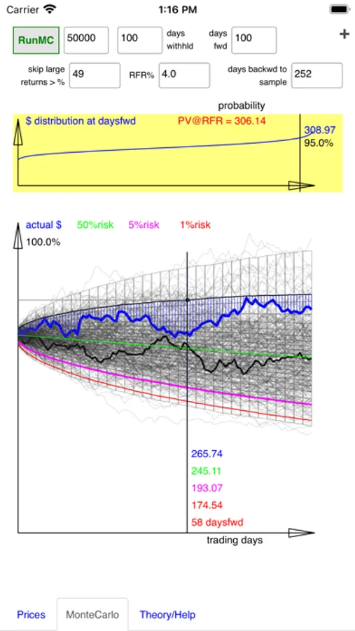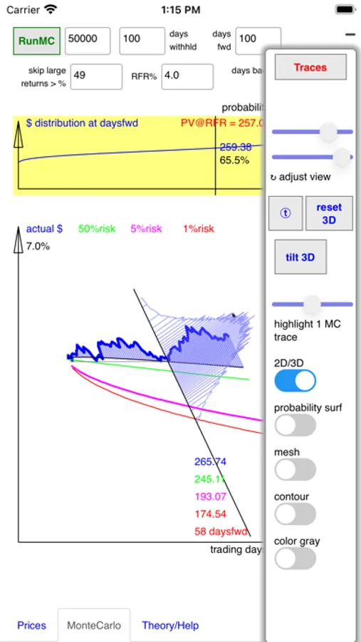 space for the graphics. Use + button on upper right of the Monte Carlo tab view to show additional controls.