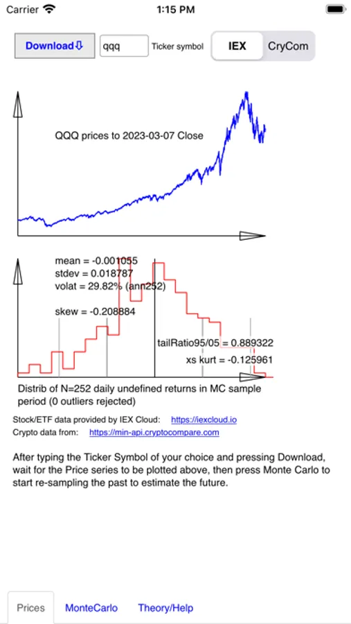 This app resamples from empirical daily returns to generate forward-in-time monte carlo paths (random walks).