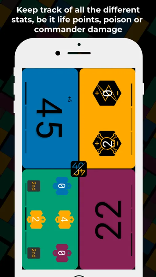 ・Track your pods life total, be it on a 1v1 game, or commander game up to 6 players!