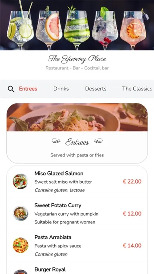 Add allergens, types and preferences to menu items, so customers who want a specific dish, drink or have a food allergy, can filter on it.