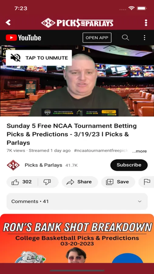 Free and premium VIP subscribers to Picks and Parlays get access to daily video picks and more.