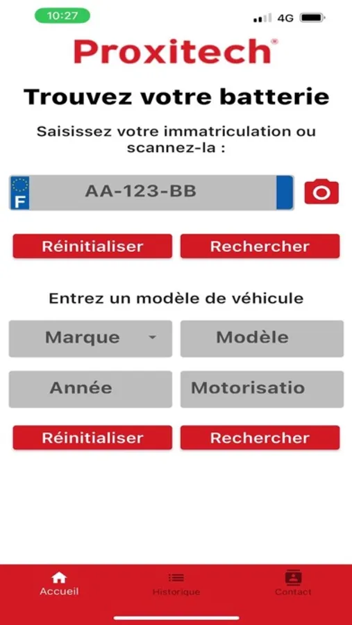 Notre application permet de faciliter la recherche de batteries pour les véhicules en utilisant des informations clés telles que la marque, le modèle, l'année, la motorisation et même la plaque d'immatriculation.