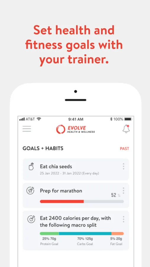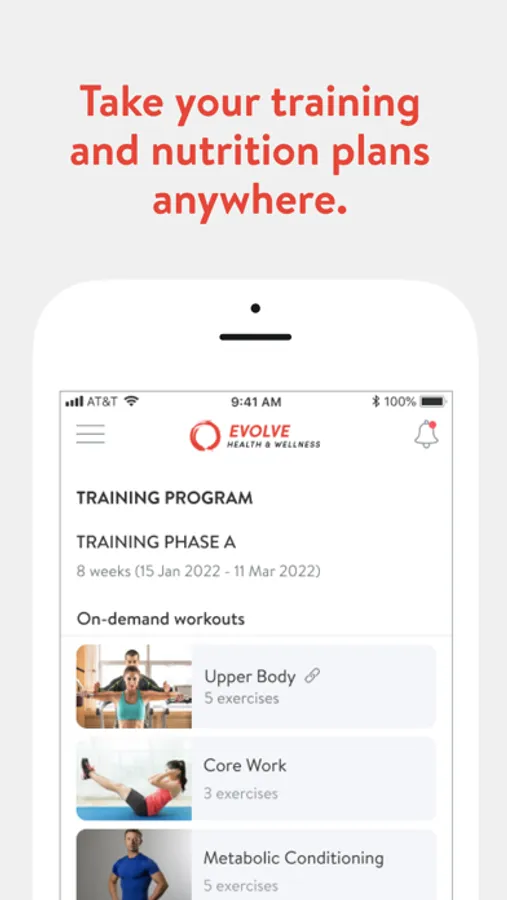 With the Evolve Fitness App, you will have access to workout programs designed specifically to help you reach your fitness and health goals! You can follow & track your workouts, your nutrition, your lifestyle habits, measurements and results–all with the help of your coach.