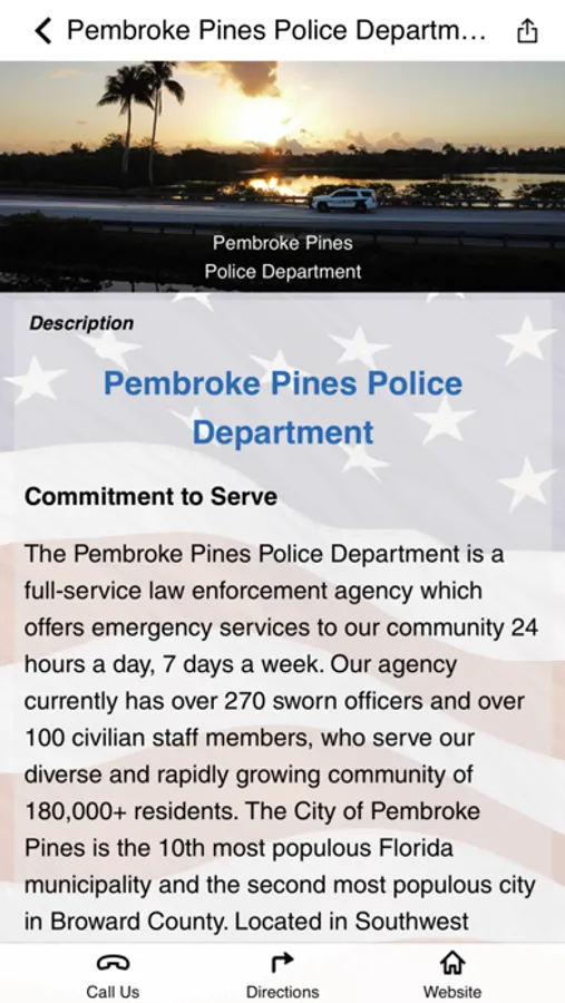 This app is for the employees of the Pembroke Pines Police Department, their families, and the community they serve. This app contains information about the department as well as safety and crime prevention tips. The Pembroke Pines Police Department's employees and their families will have access to a full range of wellness tools.