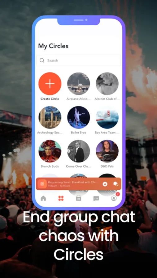 Eliminate group chat chaos with Hangtight circles, This feature lets you build virtual friend groups based on shared interests or preferences, regardless of the group size. With just a single tap, you can invite everyone in your circle to an event. Additionally, each circle comes with a dedicated group chat for constant communication and coordination.