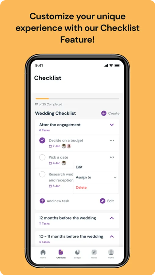 Assign Wedding Tasks: Wedding planners and couples are able to create and assign tasks within our wedding planning app!