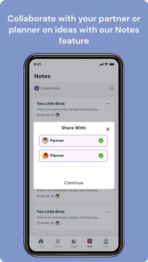 Wedding Notes & Ideas: Create and share notes with your wedding planner and/or partner within the app.