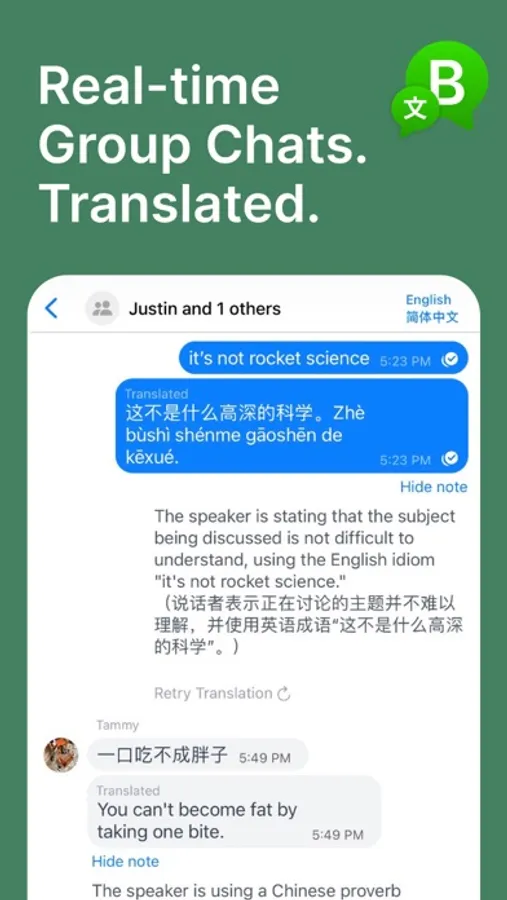 Group Chats: Chat naturally with multiple people with group chats in multiple languages.
