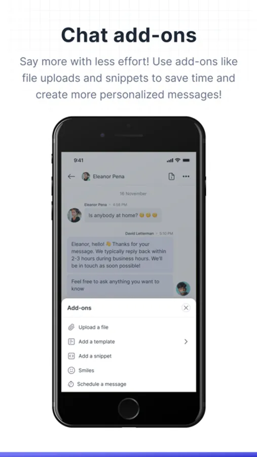 •Connect your support, sales and marketing teams to send and receive messages in real-time, with the rest of your team