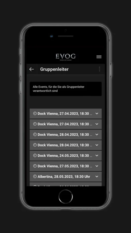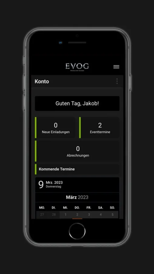 Organisiere dich mit deiner EVOG Event App – neue Showanfragen, Terminverwaltung, Erinnerungen, Buchhaltung … und vieles mehr! All dies vereint in deiner EVOG App.