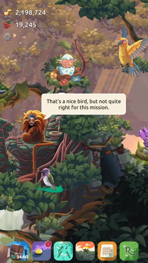 Progress from humble beginnings to establish a wondrous forest. Level up birds, collect feathers to summon new bird species, and meet a charismatic ensemble of forest dwellers as you complete missions and events that bestow valuable rewards!