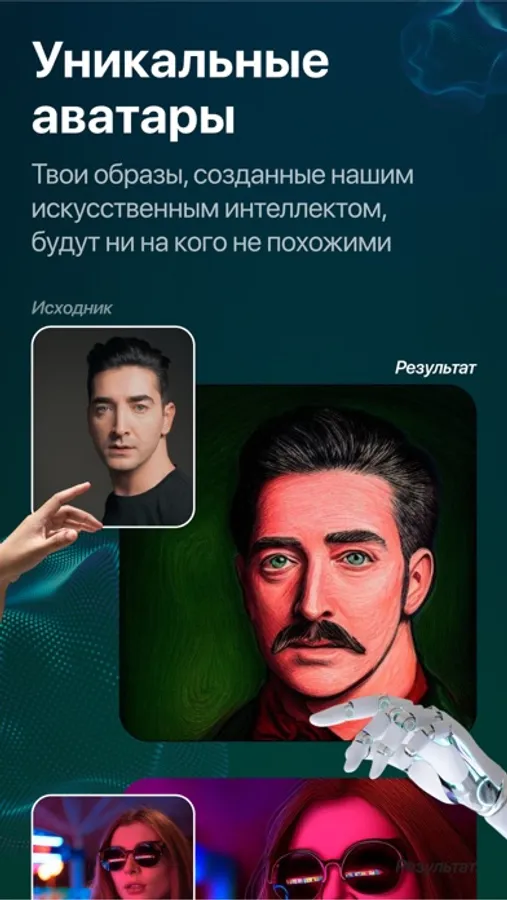 * Замыленные снимки и фотошоп? Нет это не для тебя. Твои образы, созданные нашим искусственным интеллектом, будут ни на кого не похожими.