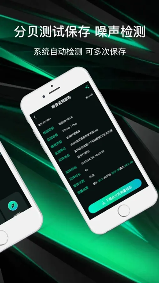 可根据定位实时测试周边环境噪音,系统自动分档提示分贝测试结果,可及时保存;