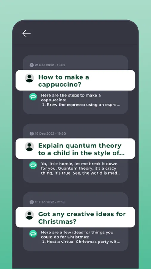 On this app, there is no personal information. May produce inappropriate or harmful information. The content produced is not the responsibility of ChatAI Bot - Assistant.