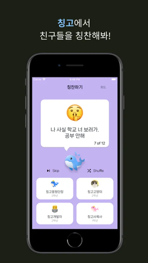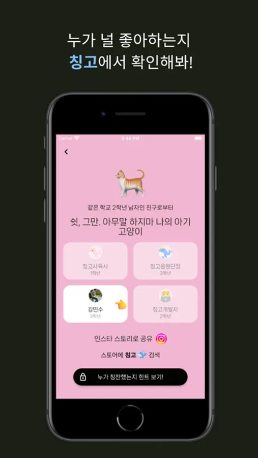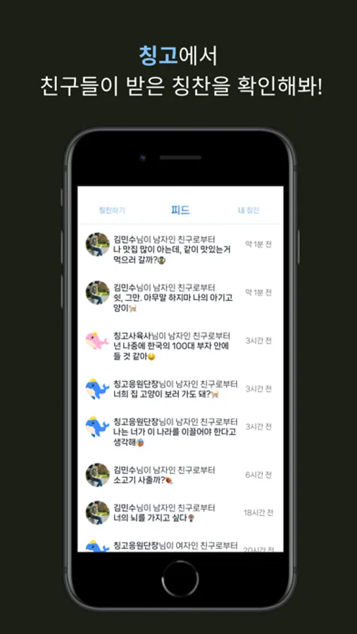 익명 칭찬 앱, 칭고는 친구들이 여러분의 어떤 점을 좋아하는지 몰래 말해주는 어플이에요.