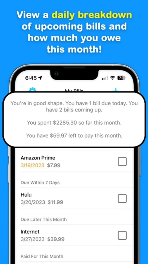 Improve your financial literacy by making your bills more predictable and receive notifications when bills are due so you never miss a payment again.