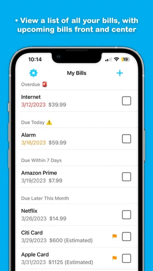 Missing a credit or loan payment can have massive consequences for your credit. Billminders gives you the reminders you need to never miss a payment again, thus improving your credit score!