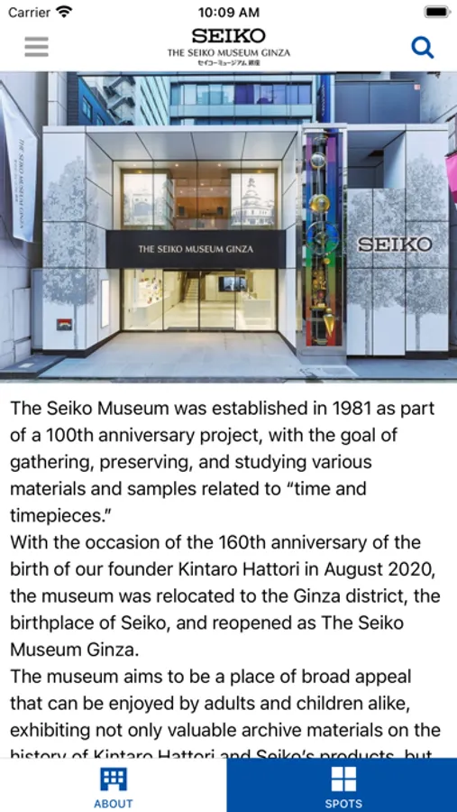 With the occasion of the 160th anniversary of the birth of our founder Kintaro Hattori in August 2020, the museum was relocated to the Ginza district, the birthplace of Seiko, and reopened as The Seiko Museum Ginza.