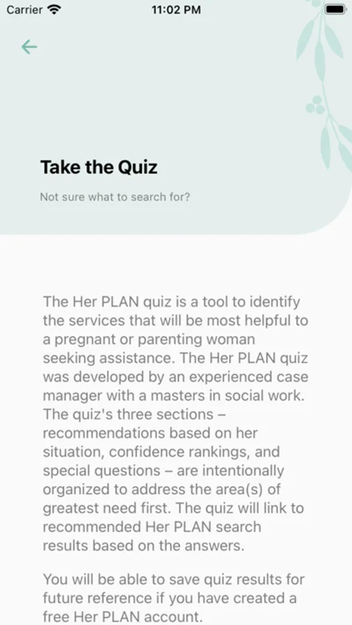 Browse the Her PLAN directory to discover vetted providers serving pregnant and parenting women in 25 different specialties, or take our quiz to produce a guided case plan for your client’s needs. With multiple filters based on category of need, price, and location, you can easily locate trusted services for you, your clients or friends.