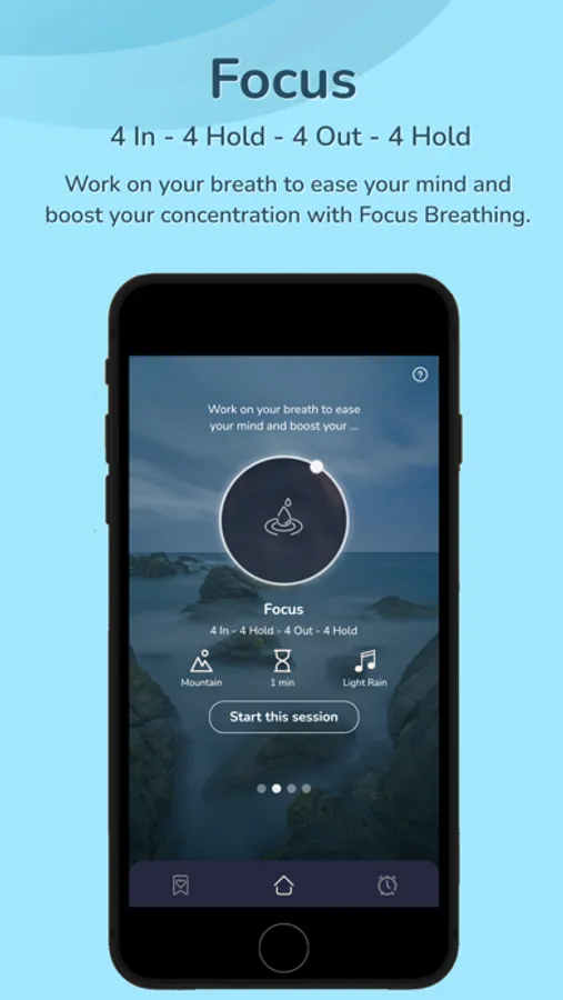 - Focus: Inhale for 4s, hold for 4s, exhale for 4s and hold for 4s