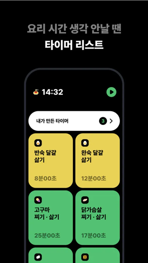 - 간단하지만 시간을 재야하는 요리들의 타이머를 볼 수 있어요.