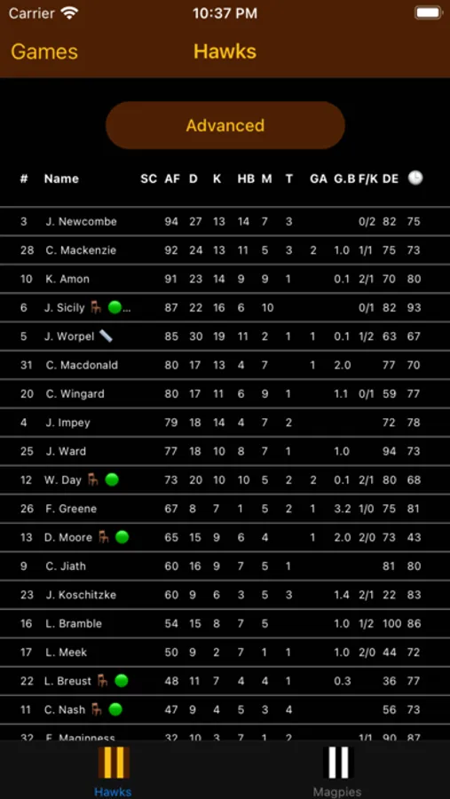 Track live fantasy scores from professional Australian Rules Football games across the country each week. Stay tuned in to your players latest scores and get the edge on your opponents by having access to all the most important and relevant statistics for your fantasy sports team.