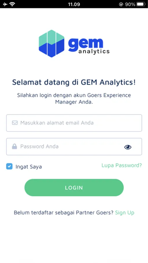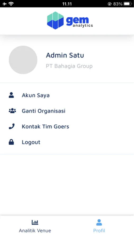 4. GEM Analytics App ini juga menyediakan fitur untuk mengelola akun dan melakukan kontak kepada tim GOERS yang terhubung secara langsung dengan Whatsapp.