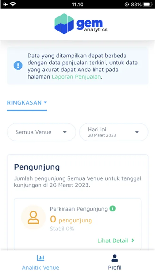 1. GEM Analytics App ini memiliki fitur untuk melihat analitik “Pengunjung”. Fitur ini memberikan informasi yang lengkap mulai dari perkiraan pengunjung hingga pengunjung yang telah hadir.