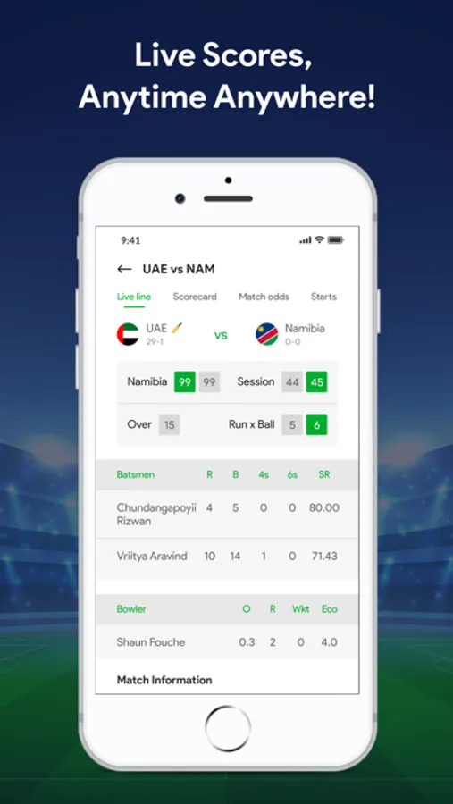 Best Live Cricket Score app for Cricket fans and live match followers. Get live Cricket match score updates on your mobile for all International matches, T20 leagues. This app provides fast score updates and you will be able to check ball-by-ball runs and other live score stats.