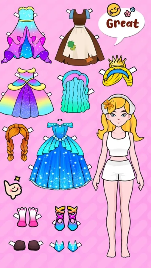 Paper Princess lets you become a queen of fashion and dress up your custom magic princess dolls. Customise your dolls by choosing from the wide variety of clothing options, accessories, hair styles, and makeup looks.