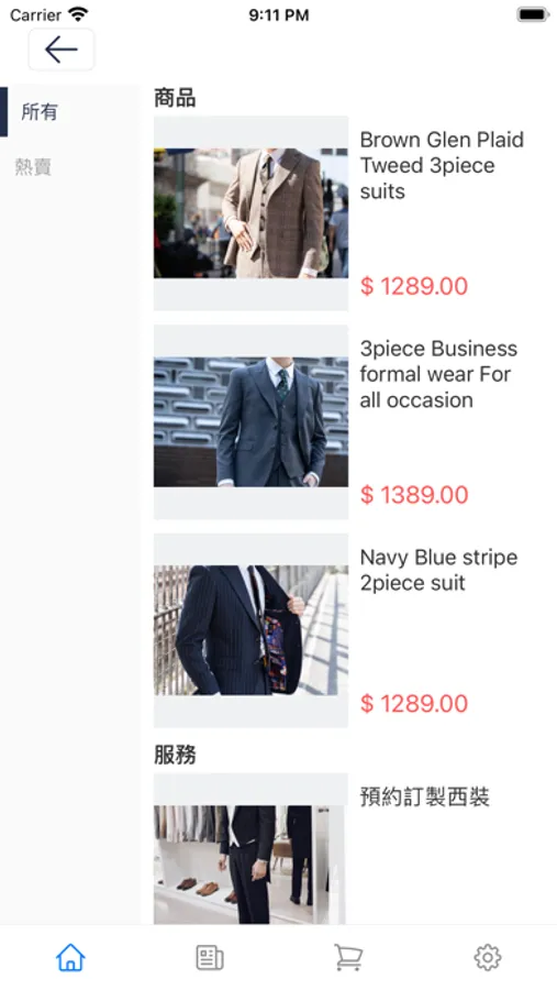 一個讓你可以查看最新資訊及預約訂製西裝的應用程式
