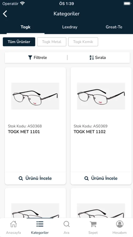 * Ürün kategorilerinde filtreleme yapabilirsiniz