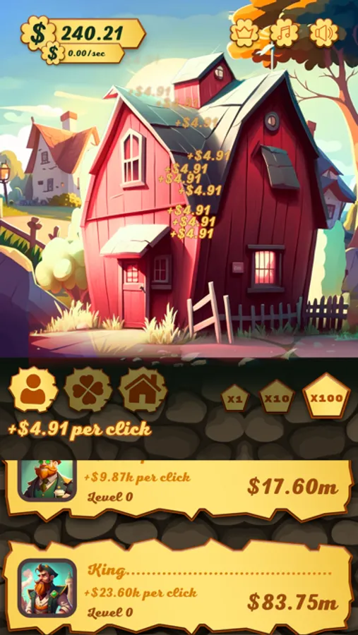 To begin, you must start clicking on the screen to earn gold coins. These coins are the primary currency in the game and are used to purchase upgrades for your village. As you accumulate more coins, you can hire and train other leprechauns to work for you. These charges will help you gather more coins and improve your village.