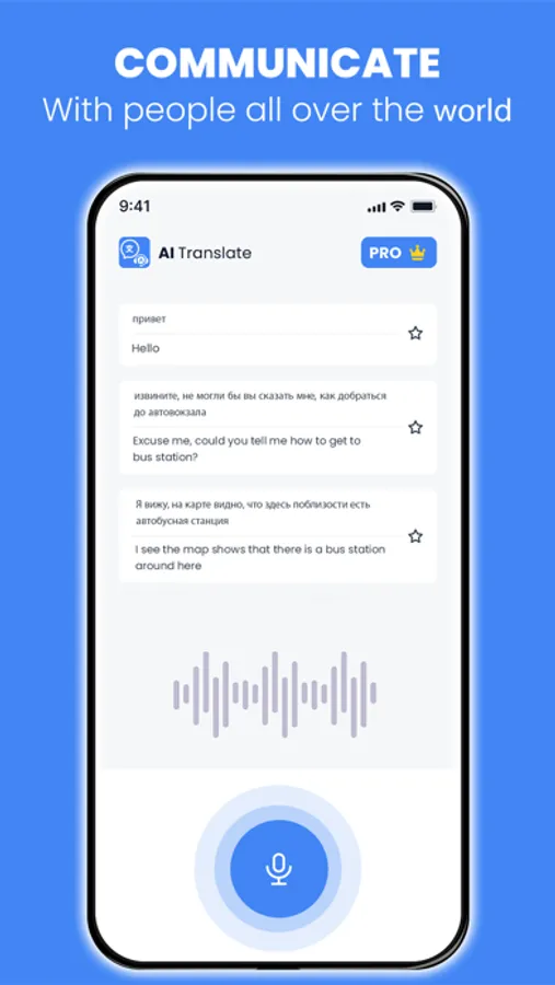 - Voice translation: Speak into your device and AI Translate will instantly translate your words into the language of your choice, allowing you to have natural and authentic conversations with people from all over the world without the need for a human translator.