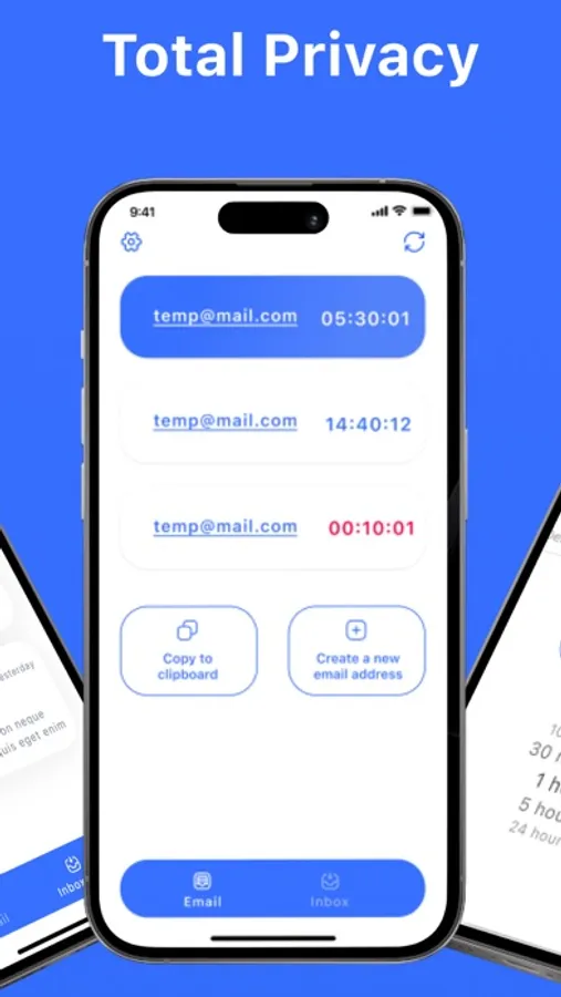 By using Temp Mail app, you'll be able to instantly create disposable temporary email address and forthwith receive emails, together with attachments.