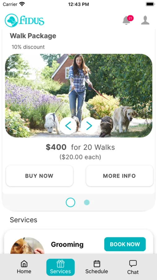 Fidus application is meant to take care of the all the services related to pet management. Services include daily weekday round-trip transportation on the Fidus shuttle to doggy daycare, boarding, in-unit feedings and dog walking services, and you even have the option of having the Fidus staff pick-up and drop-off your dog(s) from and to your apartment home The Fidus concierge and Fidus staff are onsite to provide a whole new level of service and support to our residents!