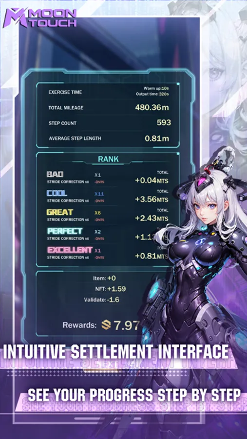 MoonTouch is a health & fitness app with fun games.Players development space-exploration game with running. In the game, players will lead their Fairies to explore the mysterious clues and unlock puzzles in the universe on the cyberpunk virtual planet.