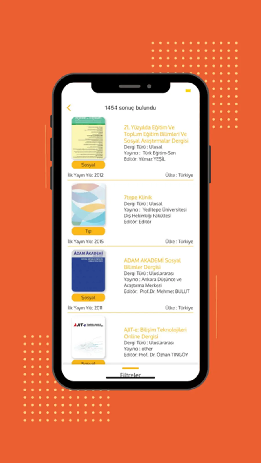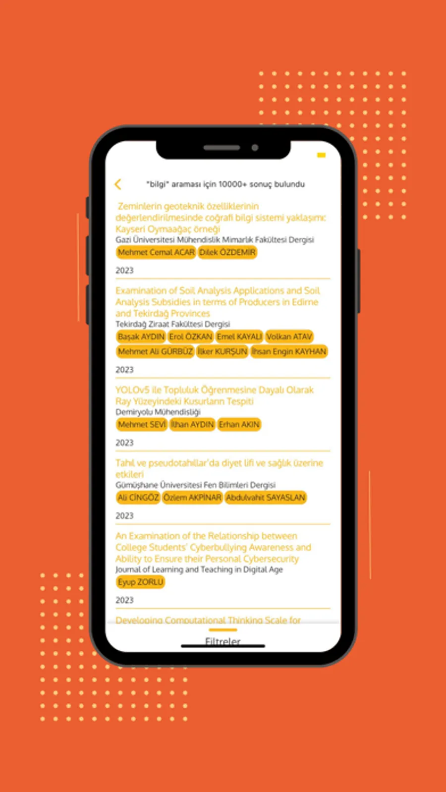 arama, Yayın Arama, Yazar Arama ve Gelişmiş Arama gibi seçenekleri sunmaktayız. Arama sonuçlarında yıllara göre sıralama seçeneği mevcuttur. Her makale için yazar, özet, sayı, yıl ve tür gibi bilgiler arama sonucundan makaleye tıklanarak erişilebilir ve makaleler indirilebilir.