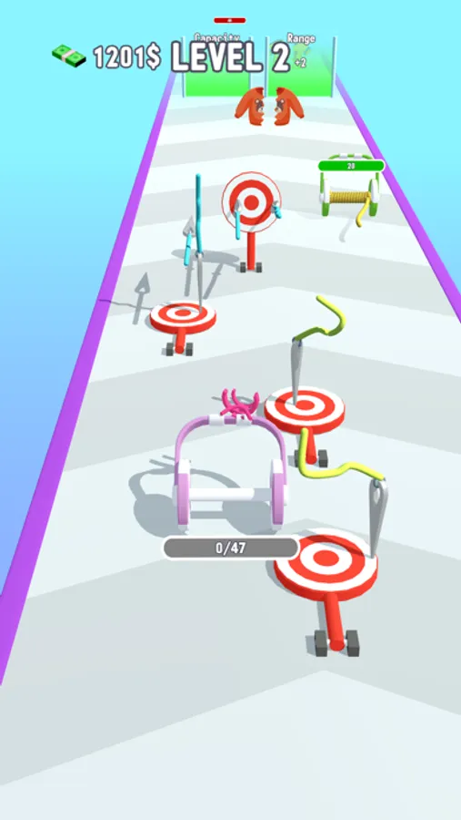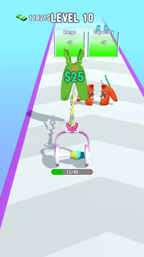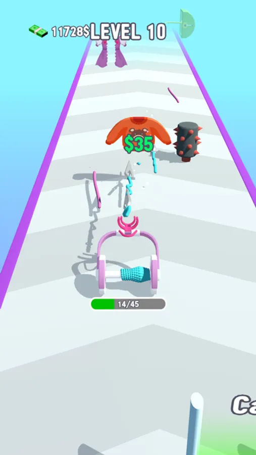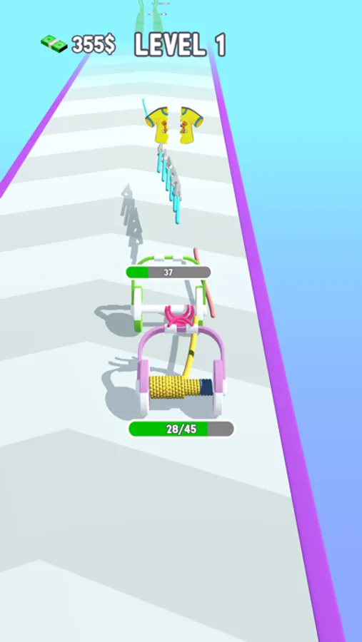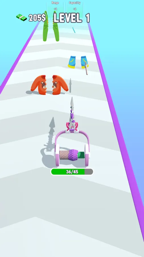 Throw the needles and sew the clothes! Collect ropes on the way. Be careful for other spools if you don't want to lose any rope.
