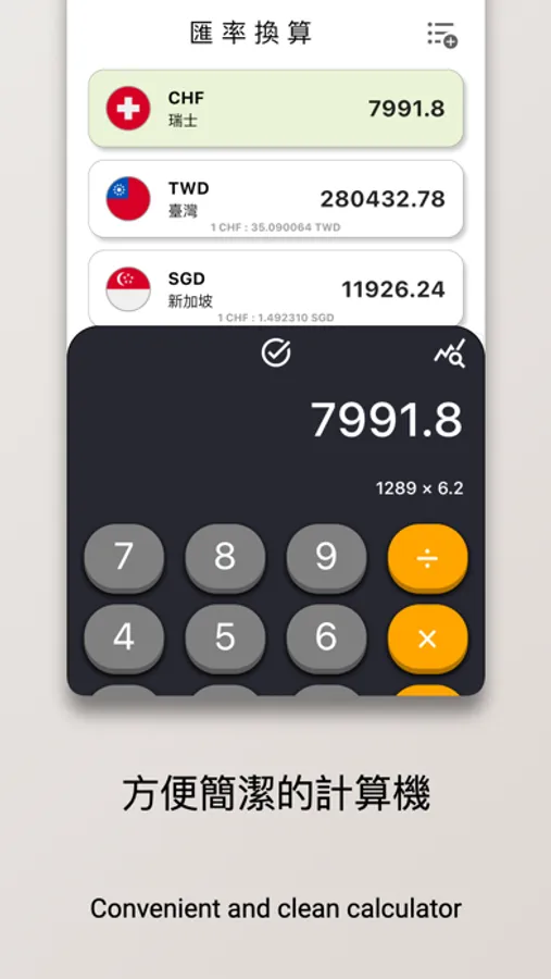更棒的是,App內建計算機功能,方便你快速進行金額計算,並即時換算成各種幣種的幣值。不論在各種情況需要計算匯率,這款App都能成為你的好幫手!