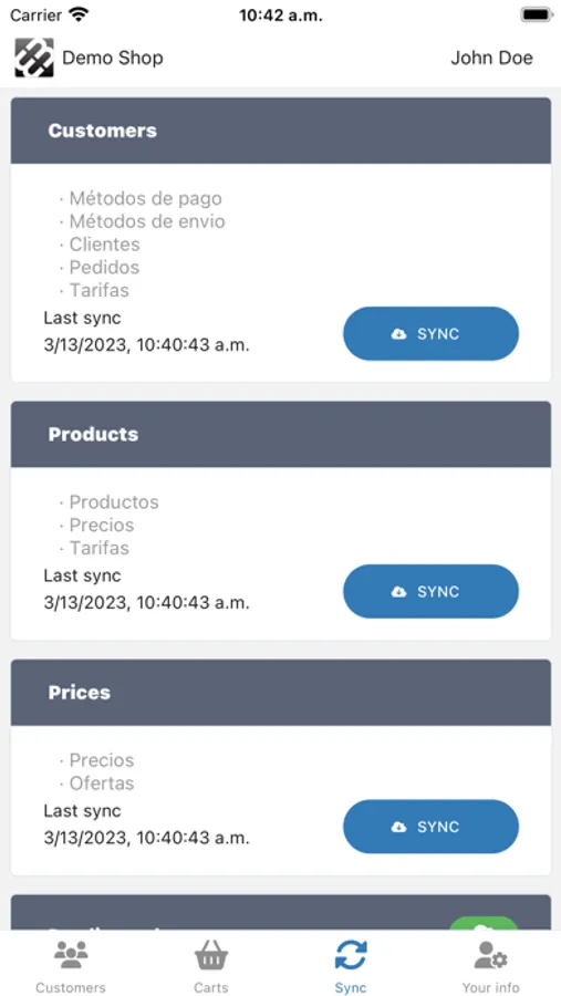 - Múltiples procesos de sincronización para mantener la solución actualizada en el mínimo tiempo posible (clientes, cliente, productos, precios, pedidos).