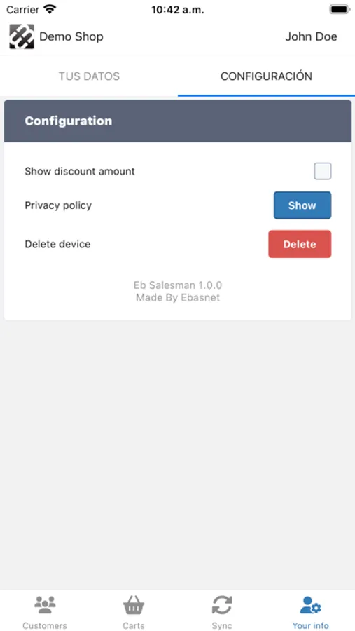 Ebasnet Salesman es totalmente operativa tanto en modo On-line y Off-line, disponible en Español, Catalán e Inglés.